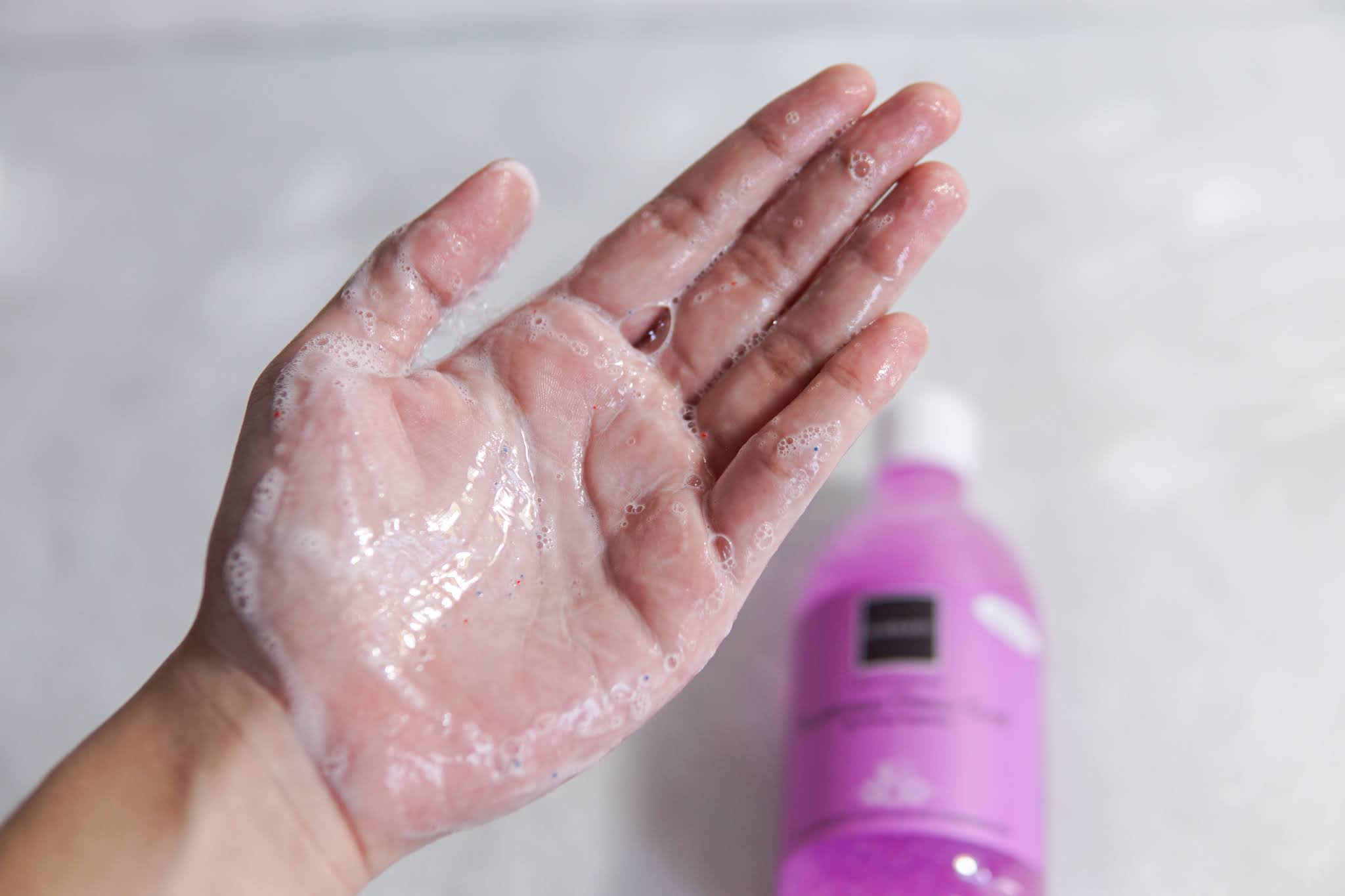 Lanjut ke produk terakhir yang jadi favoritku dari ketiga produk Scarlett ini. Hal pertama yang aku pikirkan saat lihat produk ini adalah, warnanya bikin gemas! Seperti yang bisa kalian lihat, shower scrub ini punya warna ungu cerah dan butiran scrub warna-warni.